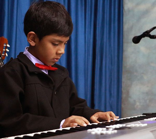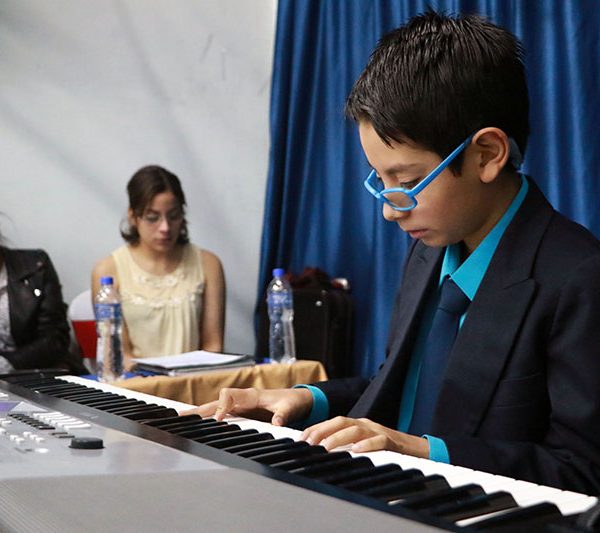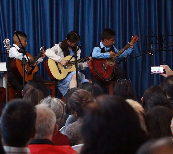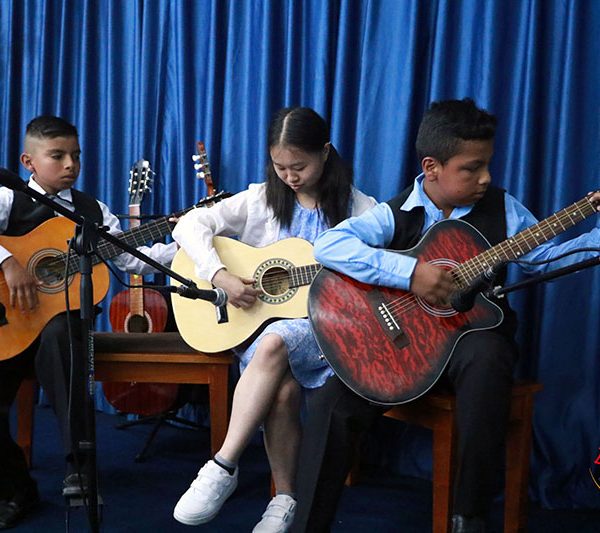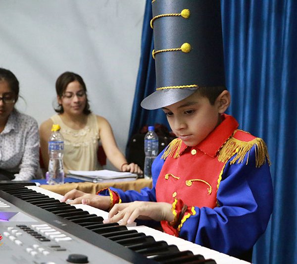 Nuestros estudiantes interpretan en la presentación de fin de nivel las partituras aprendidas durante sus clases frente a sus padres y familiares.